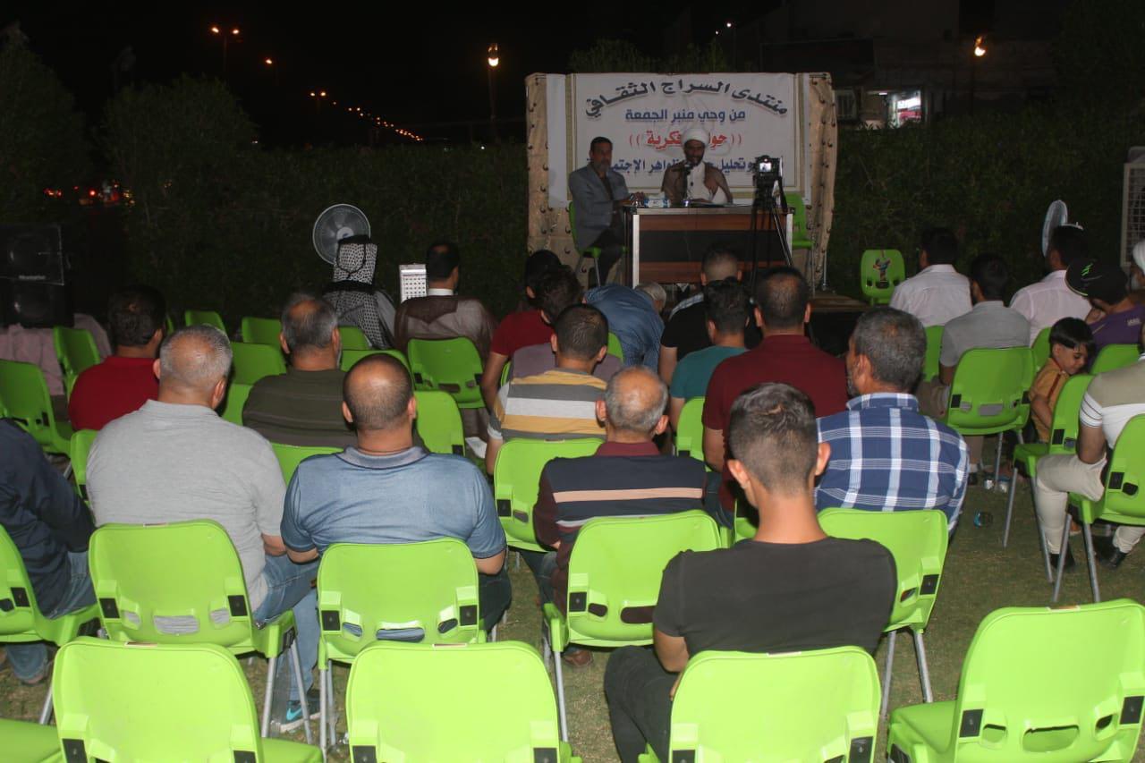 اقام منتدى السراج الثقافي جلسته الاولى لهذا الشهر لمناقشة ودراسة خطب صلاة الجمعة المباركة التي تقام في الصحن الحسيني الشريف.