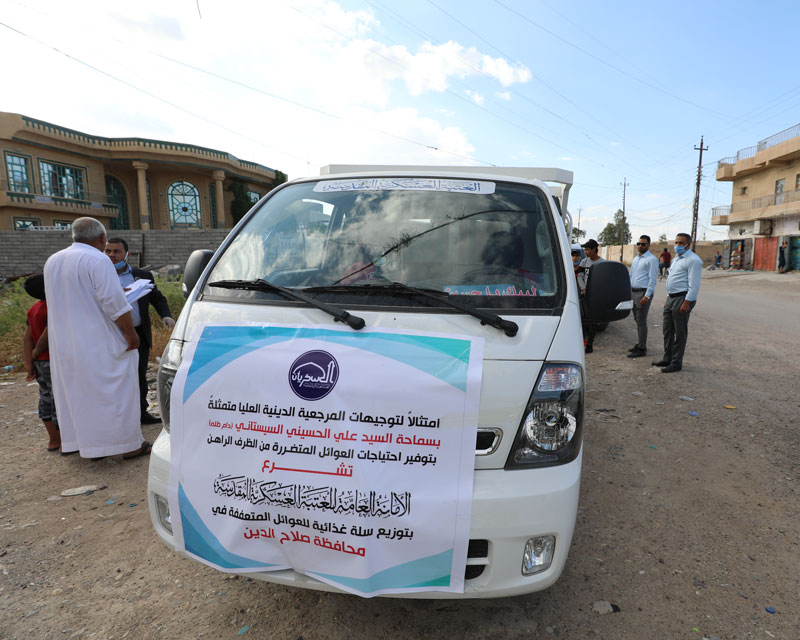 استجابة لنداء المرجعية الدينية العليا بتوفير الحاجات الأساسية للعوائل المتضررة من الأوضاع الراهنة التي تعاني منها البلاد ، الأمانة العامة للعتبة العسكرية المقدسة تقوم بتجهيز (4000) سلة غذائية متكاملة ، لتوزيعها على مستحقيها من العوائل المتعففة في عدة مناطق من مدينة سامراء المقدسة وتكريت والعاصمة بغداد التي تعاني من صعوبة التنقل بسبب الحظر المفروض على البلاد والاجراءات الوقائية لمنع تفشي فايروس كورونا قامت العتبة العسكرية المقدسة بتجهيز وتوزيع السلة الغذائية لمستحقيها