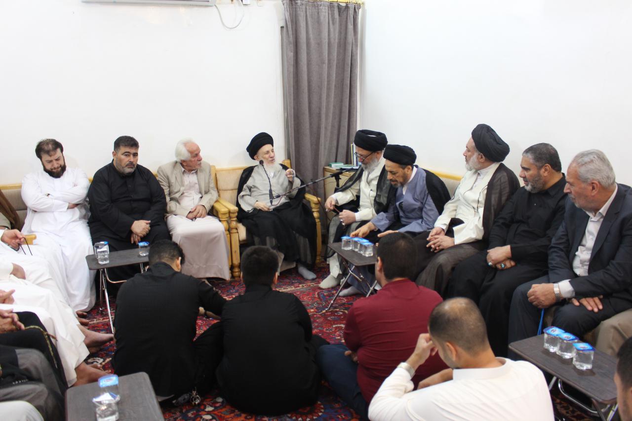 وفي ختام حديثه المبارك بعد الدعاء لهم بالتوفيق والسداد، أوصى سماحة المرجع الكبير السيد الحكيم (مدّ ظله)، جميع المؤمنين بإقامة المآتم حزناً على سيد الشهداء عليه السلام، وعلى الشعراء في عاشوراء أن يندبوا في رثاء الإمام الحسين عليه السلام، لعظم مصيبته ولما حل به وبأهل بيته وأصحابه عليهم السلام من ظلم وقتل وتعذيب، بكى الرسول صلى الله عليه وآله بنفسه عليه بأبي وأُمِّي، وكذلك أهل البيت (عليهم السلام)، فقد حثوا عليهم السلام على البكاء على أبي الأحرار وعقد المجالس ونصب المآتم لأجله، وليس لأمور أخرى لها مواضع غير مجالس عاشوراء، سائلاً العلي القدير ان يتقبل صيامهم وقيامهم، وان يوفقهم لما فيه خير الدنيا والآخرة، إنه سميع مجيب.