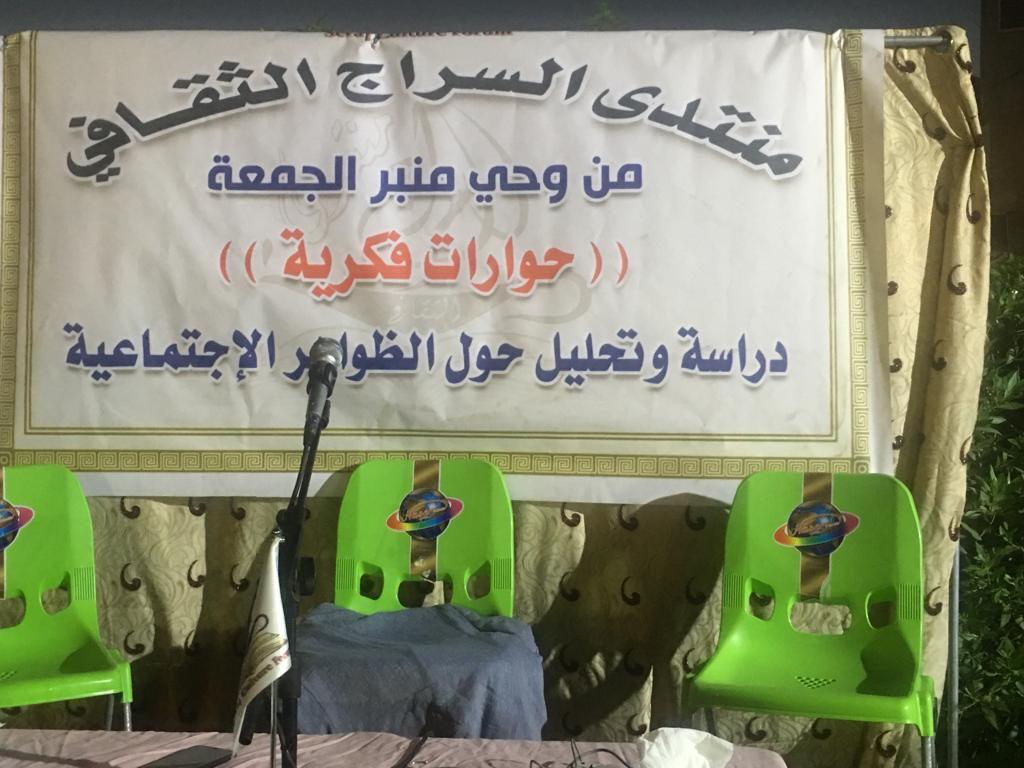 اقام منتدى السراج الثقافي جلسته الاولى لهذا الشهر لمناقشة ودراسة خطب صلاة الجمعة المباركة التي تقام في الصحن الحسيني الشريف.