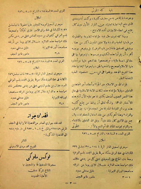 مقابلة الإمام السيد أبو القاسم الخوئي (قدس) في جريدة الغري عن أستاذه العلامة الشيخ محمد جواد البلاغي رحمه الله