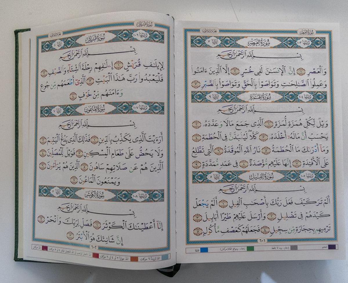 - المصحفُ المجوَّد هو دليلٌ لكلِّ مَنْ يريد أن يتعلّم القراءة الصحيحة للقرآن الكريم.