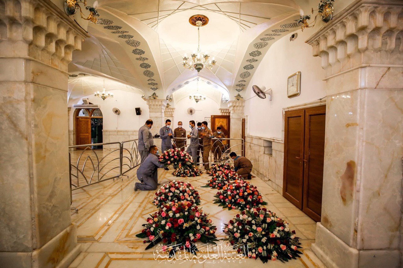 تزيين حرم سيد الأوصياء علي بن أبي طالب عليه السلام بالورود بمناسبة عيد الغدير الأغر