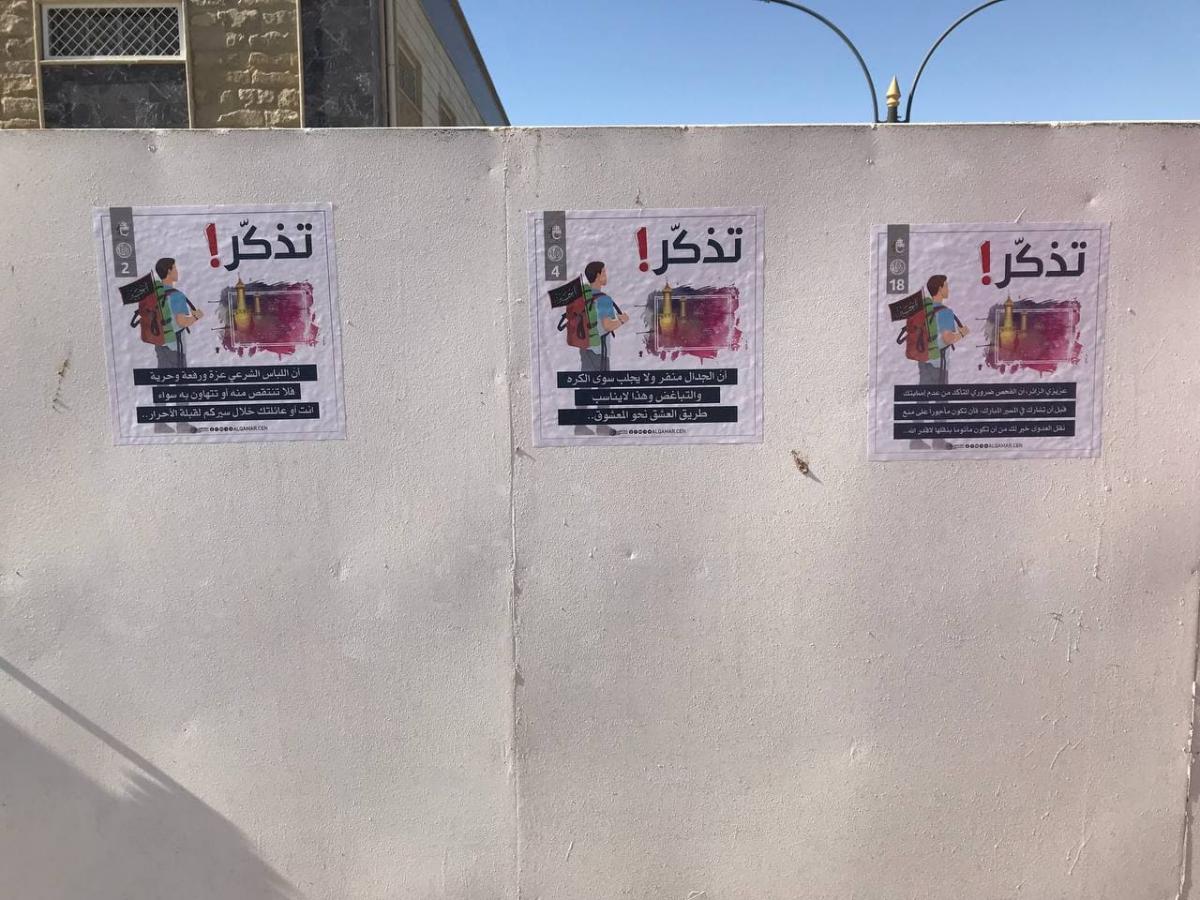 * عدد الملصقات والبوسترات التي سيتم توزيعها على طريق الزائرين هو (١٥.٠٠٠) بوستر وملصق.