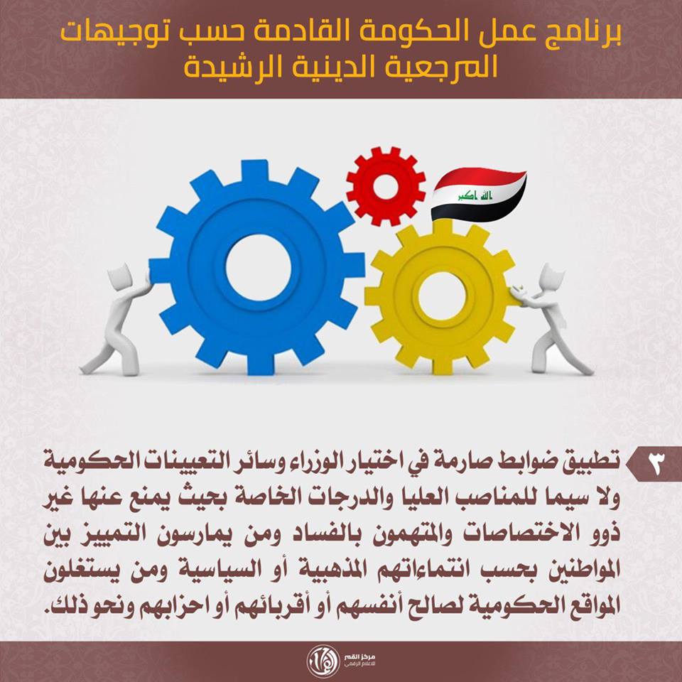 برنامج عمل الحكومة القادم حسب توجيهات المرجعية الدينية الرشيدة